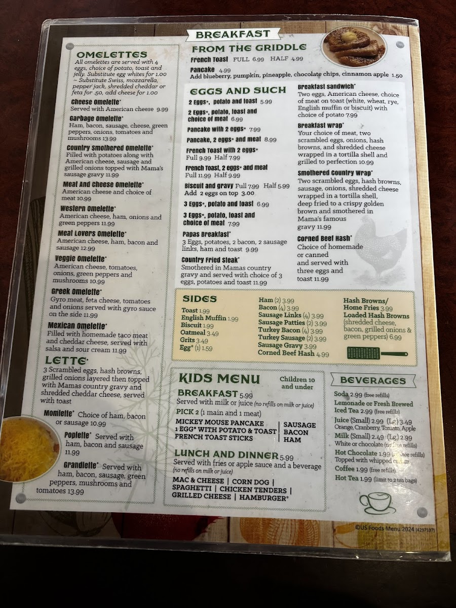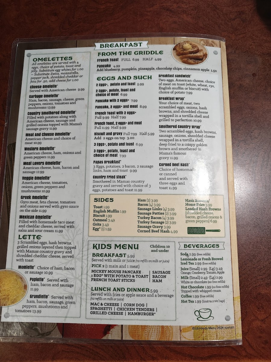 MaMa's Kitchen offers a straightforward and comforting menu that blends classic diner fare with hearty breakfast favorites. The selection features simple, satisfying dishes served in a relaxed setting, making it a welcoming spot for any time of the morning or early afternoon.